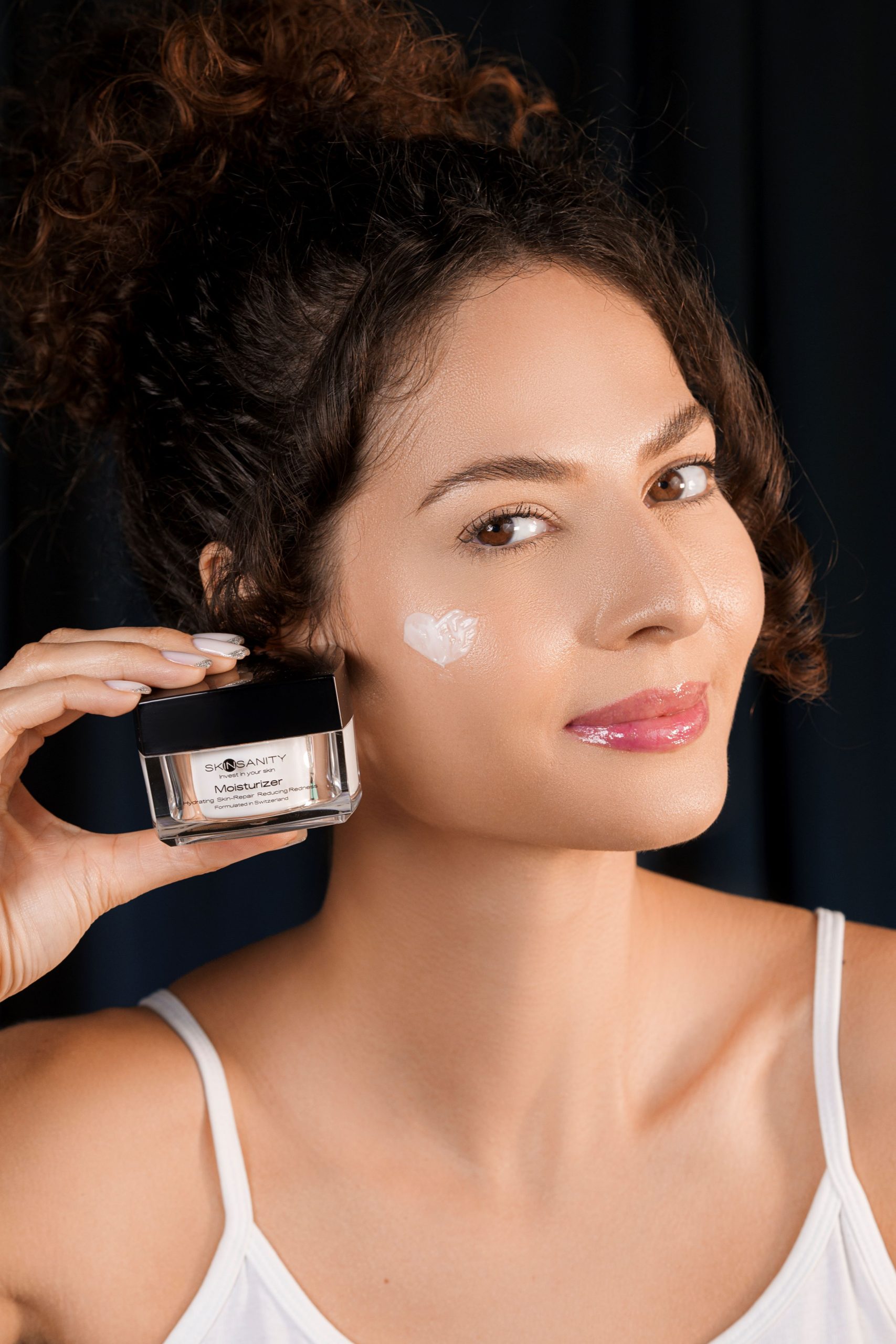 “Introducing our transformative moisturizer, a potent blend of ceramides and skin-repairing minerals designed to deeply hydrate and soothe your skin. This lightweight formula effectively reduces redness while targeting fine lines, wrinkles, and age spots for a more youthful complexion. Enriched with Vitamin E, it provides antioxidant protection, neutralizing free radicals that contribute to skin aging. Hyaluronic acid locks in moisture, leaving your skin dewy and supple with continued use. Experience the power of our moisturizer to restore your skin’s barrier and unveil a radiant, revitalized complexion.”